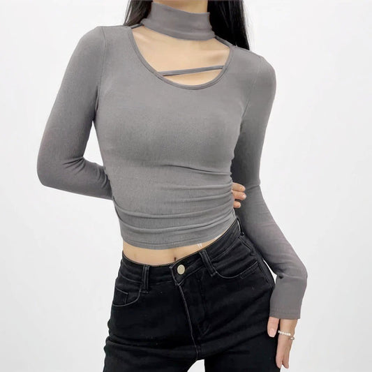 High-Neck Cutout Detail Long-sleeved Shirt